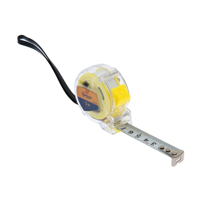 Рулетка ТУНДРА, прозрачный пластиковый корпус, 3 м х 16 мм