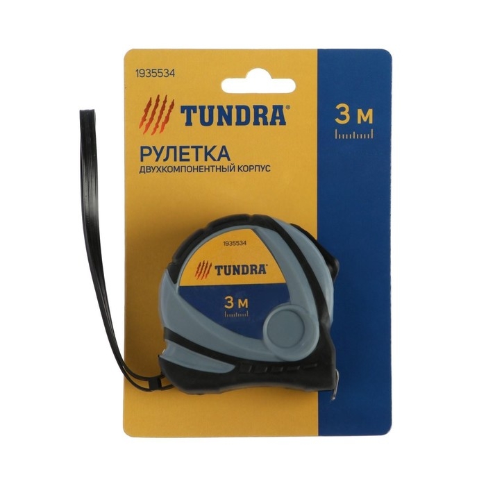 Рулетка ТУНДРА, двухкомпонентный корпус, 3 м х 16 мм
