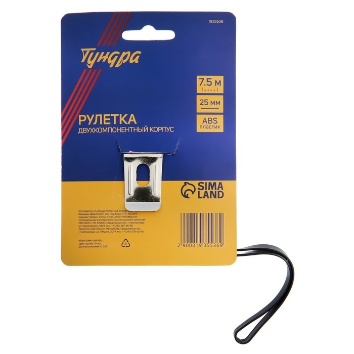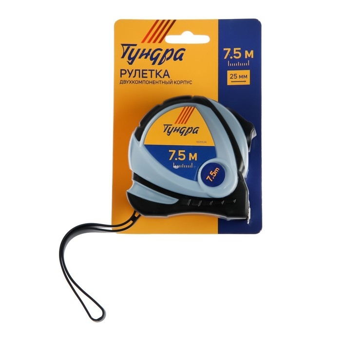 Рулетка ТУНДРА, двухкомпонентный корпус, 7.5 м х 25 мм