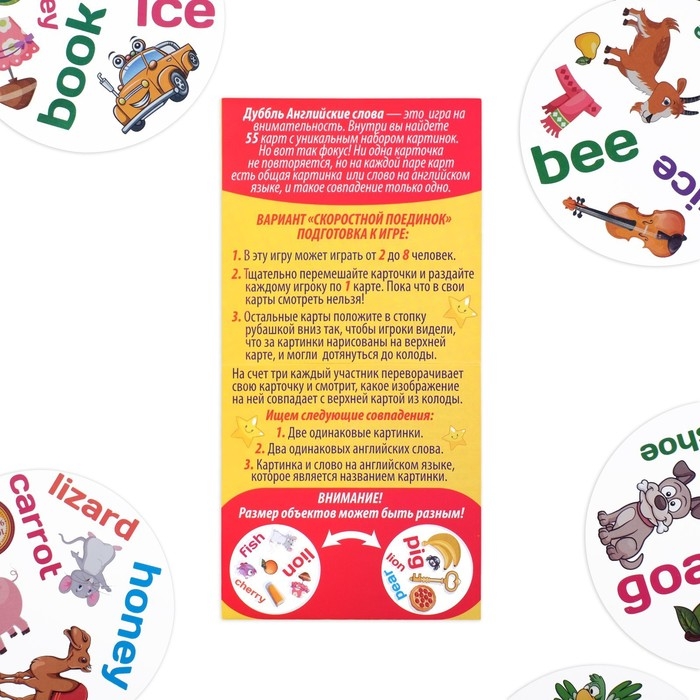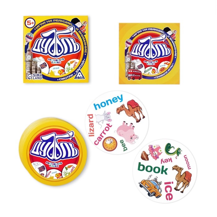 Настольная игра на реакцию и внимание «Дуббль. Английские слова», 55 карт, 5+