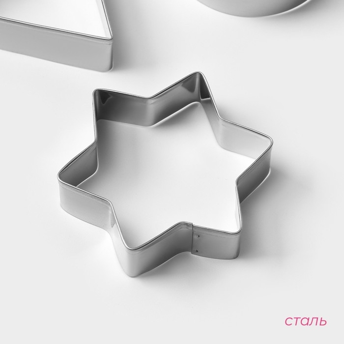 Набор форм для печенья новогодний Доляна «Звёздочка», 5 шт, цвет серебристый