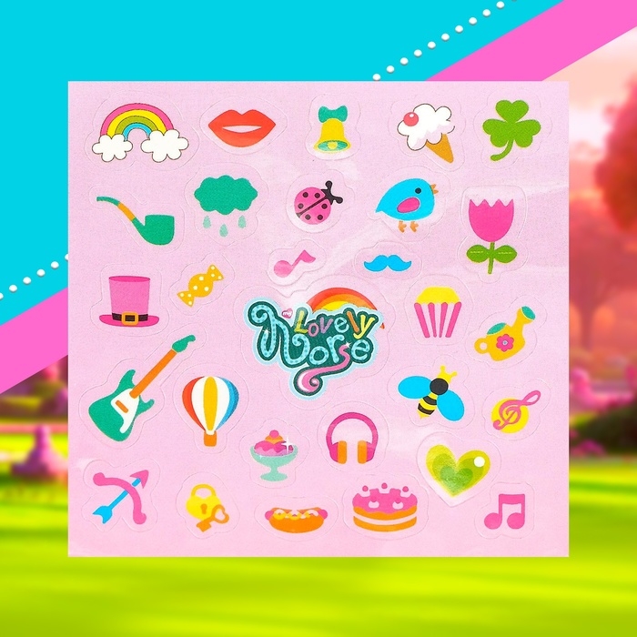 Высота лошадки — 4 см. В комплекте цветные наклейки.