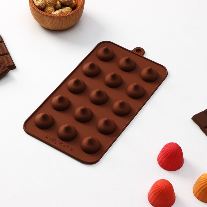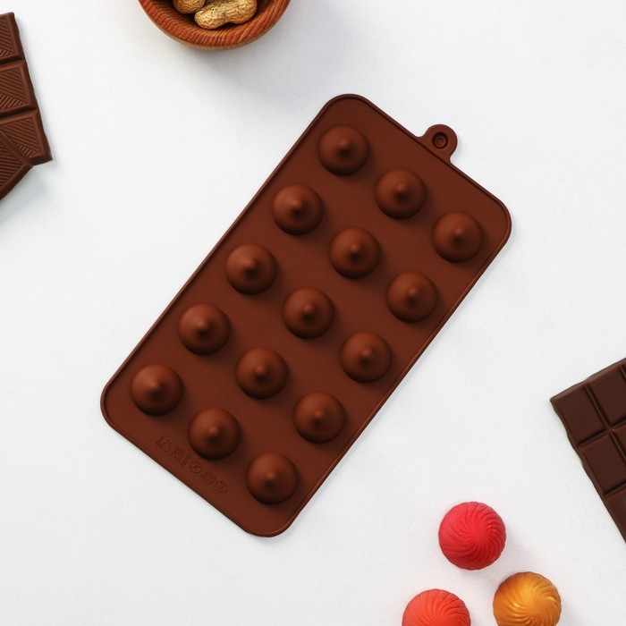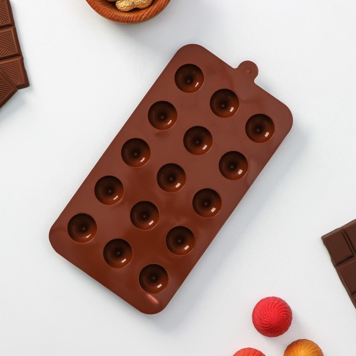 Форма для конфет и шоколада Доляна «Трюфель», силикон, 20,5×10,5 см, 15 ячеек (d=2,2 см), цвет коричневый