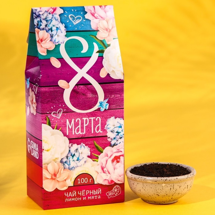 Чай чёрный «8 Марта»: с ароматом лимона и мяты, 100 г.