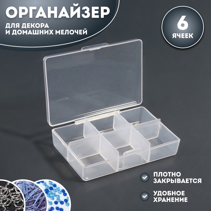 Органайзер для декора, 6 ячеек, 9 × 6 × 2 см, цвет прозрачный