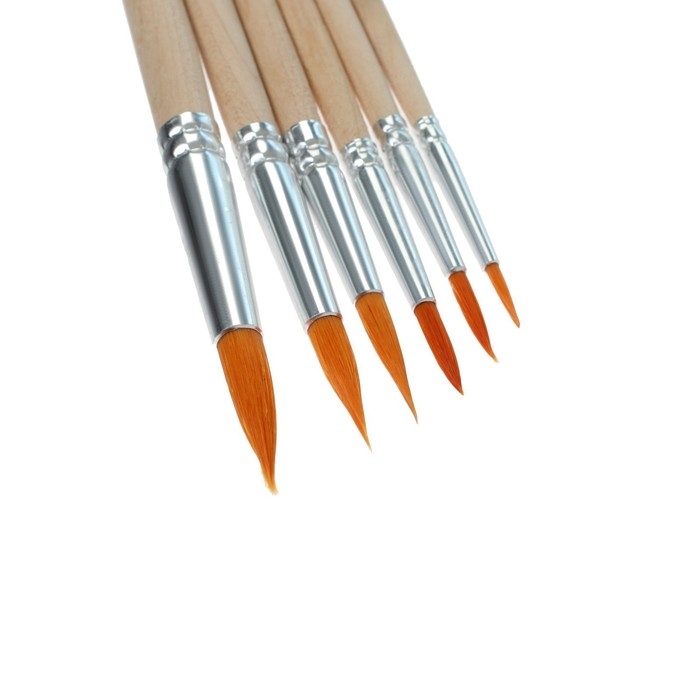 Набор кистей нейлон, круглые, средней жёсткости, 6 штук : №2, 4, 6, 8, 10, 12, с деревянными ручками, в блистере