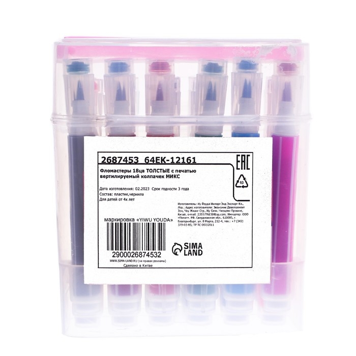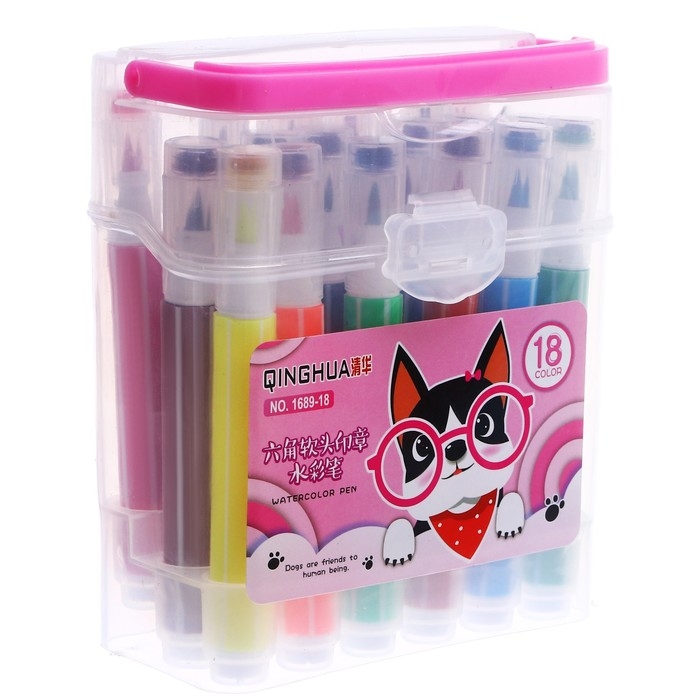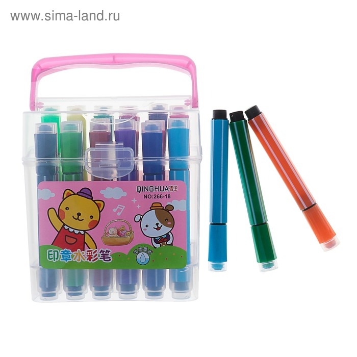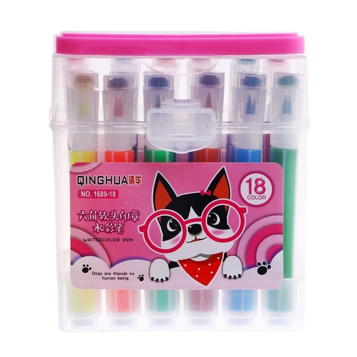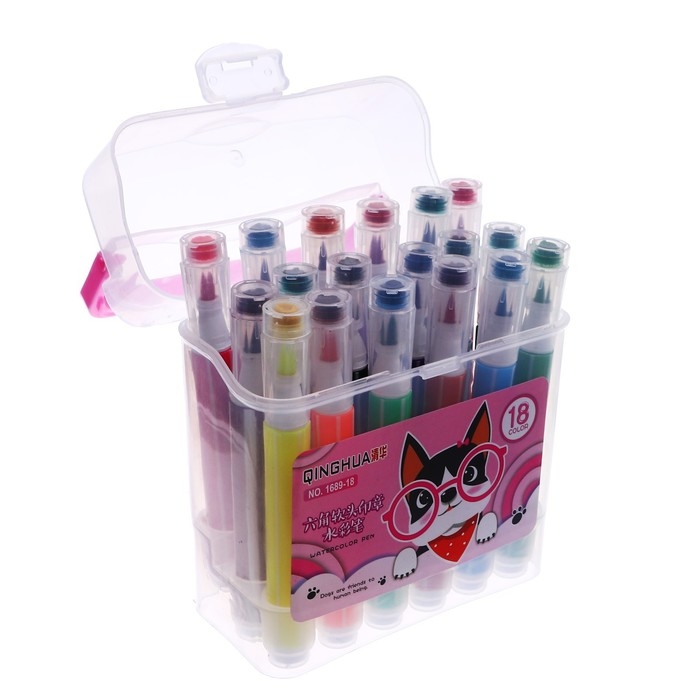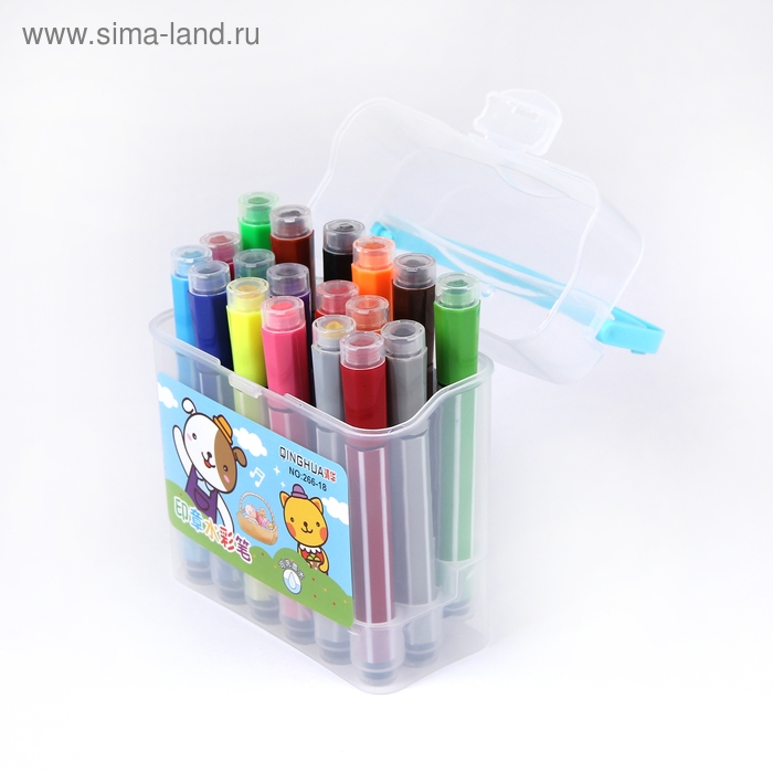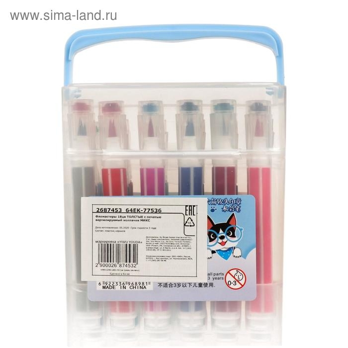 Фломастеры, 18 цветов, толстые, с печатью, вентилируемый колпачок, МИКС