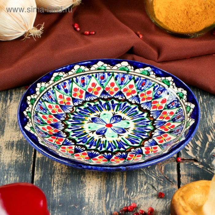 Тарелка Риштанская Керамика "Узоры", синяя, глубокая, микс, 20 см