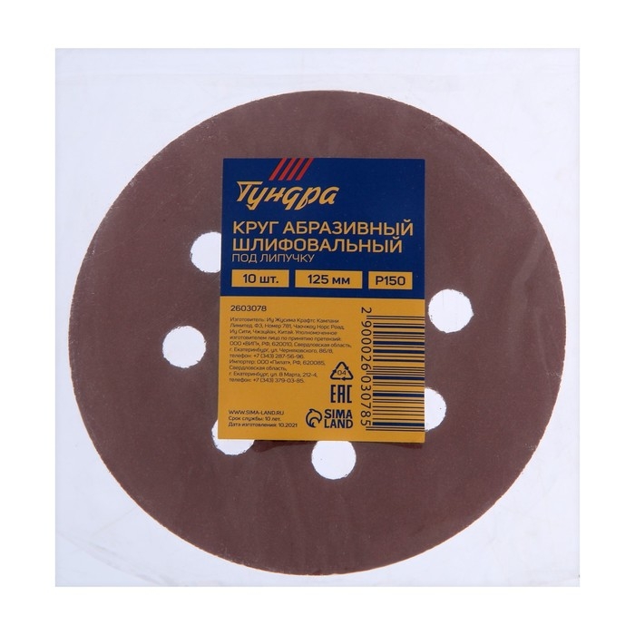 Круг абразивный шлифовальный под "липучку" ТУНДРА, перфорированный, 125 мм, Р150, 10 шт.