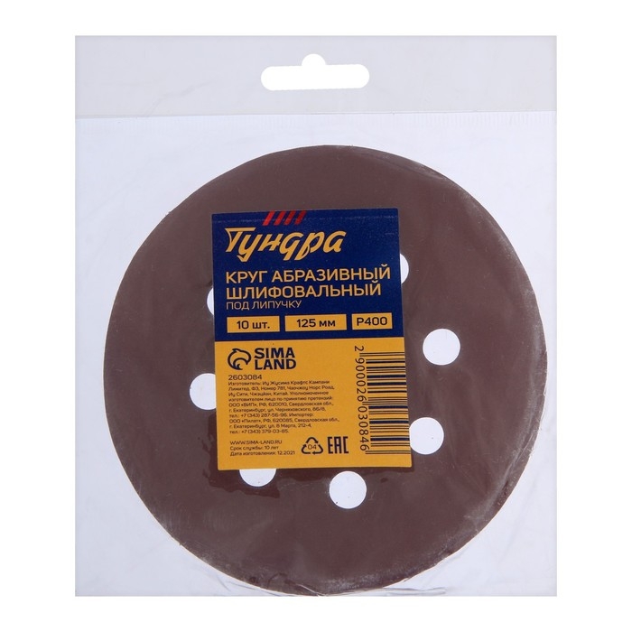 Круг абразивный шлифовальный под "липучку" ТУНДРА, перфорированный, 125 мм, Р400, 10 шт.