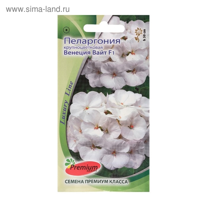Пеларгония крупноцветковая "Венеция Вайт" - это самая популярная и любимая пеларгония у любителей цветов! Великолепная, обильно-цветущая, крупноцветковая пеларгония серии Венеция. Растения очень красивые, компактные, высотой до 30 см. Соцветия завораживают, очень крупные, диаметром 12-14 см, цветки расположены плотно, образуют форму шара. Великолепно растёт в комнатных условиях, на солнечных балконах и в качестве летника в саду. Растения устойчивы к жаре, хорошо переносят кратковременные понижения температуры. Цветут непрерывно весь сезон, а в комнатных условиях при дополнительной подсветке цветут круглый год.