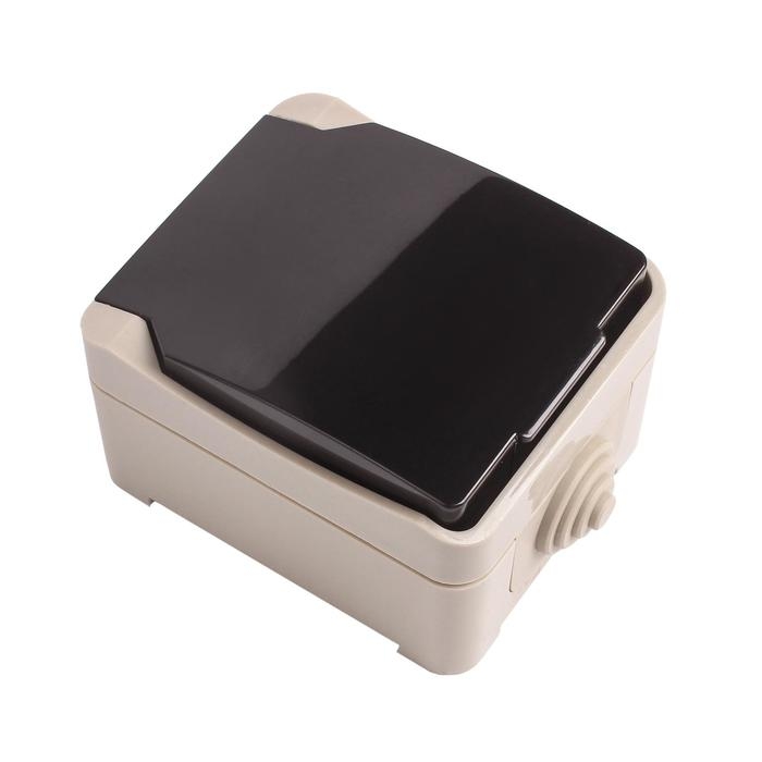 Розетка Smartbuy "Сатурн", одноместная, 16 А, IP54, с крышкой, с заземлением, чёрная/серая