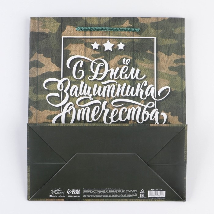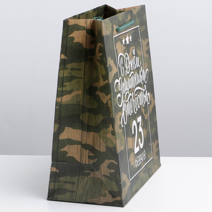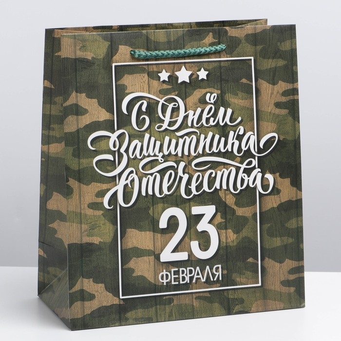 Пакет подарочный ламинированный вертикальный, упаковка, «С Днём Защитника Отечества, 23 февраля», ML 27 х 23 х 11.5 см