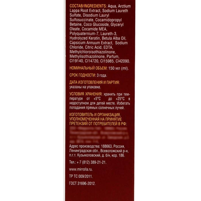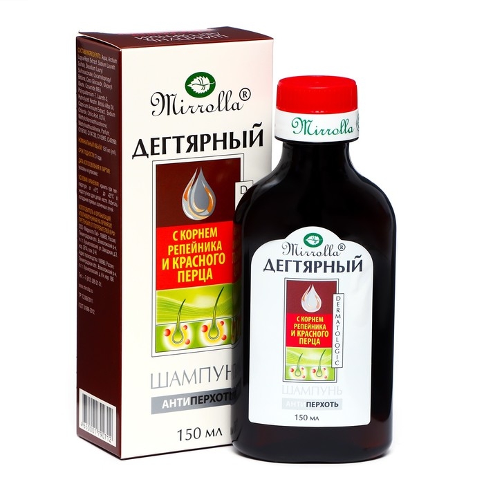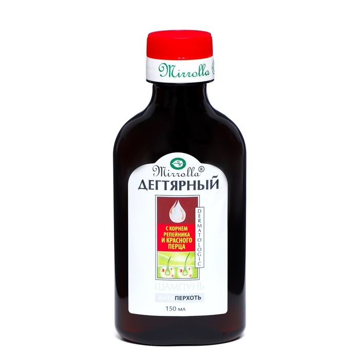 Шампунь Mirrolla дегтярный "Красный перец и экстракт репейного корня",150 мл