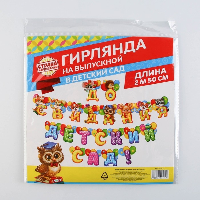 Гирлянда на люверсах на Выпускной «До свидания, детский сад!», длина 250 см