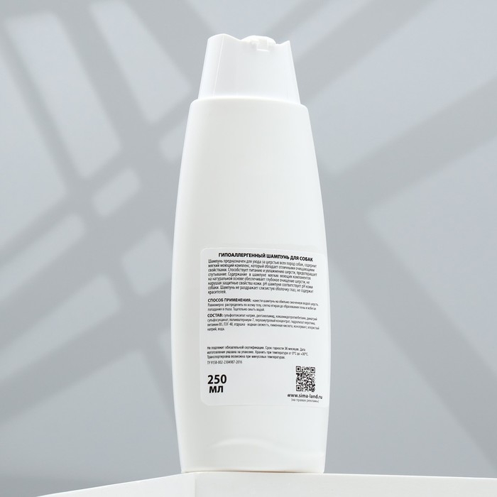 Шампунь "Пижон" гипоаллергенный, для чувствительной кожи, для собак, 250 мл