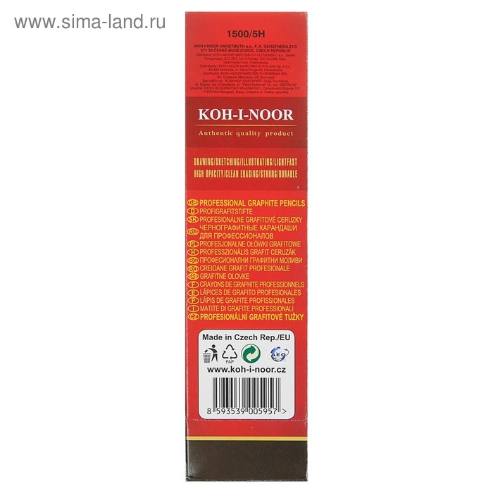 Карандаш чернографитный Koh-I-Noor 1500 5H, профессиональный, лакированный корпус