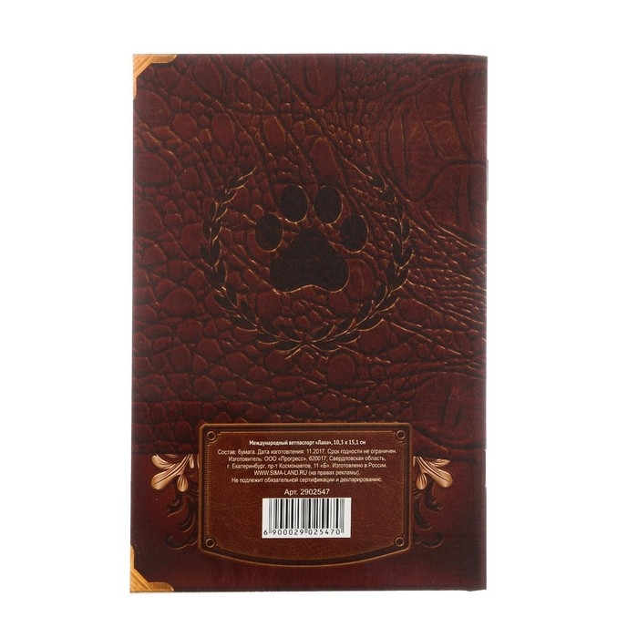 В этот документ включены данные о проведенных вакцинациях, чипировании, наличии прививок и информации о заболеваниях. Крепкая обложка из прочной бумаги обеспечивает продолжительный срок службы паспорта.