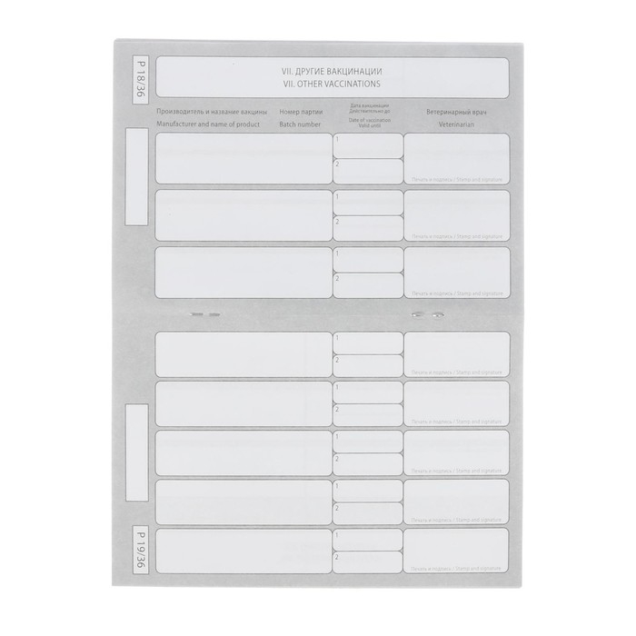 Эта ветеринарная карта подходит для любых пород и видов животных, включая птиц и лошадей.