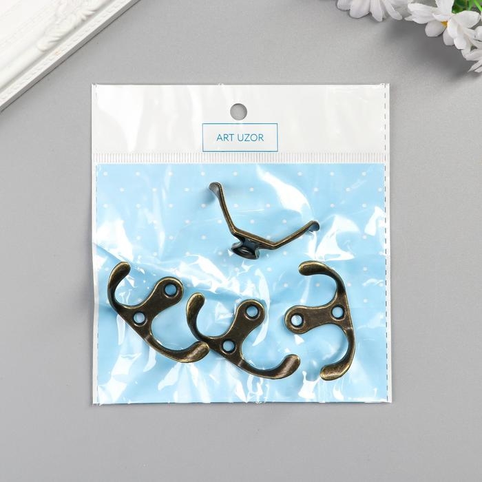 Крючок металл двойной (набор 4 шт) бронза 4,5х3 см