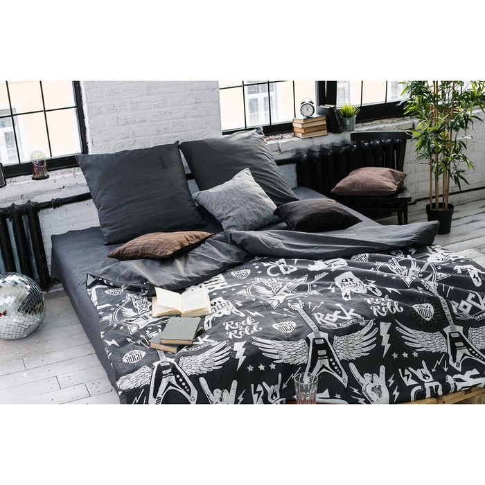 Постельное бельё "Этель" 1.5 сп Rock&Roll 143*215 см, 150*214 см, 70*70 см -2 шт,100% хл, бязь 125 г/м2