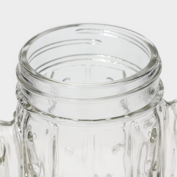 Банка с ручкой оснащена удобной ручкой и крышкой, она завоевала уважение тех, кто обожает здоровое питание. В оригинальной кружке можно даже готовить полезные завтраки, например, гранолу с йогуртом. Часто используется в барах для подачи коктейлей и лимонадов.