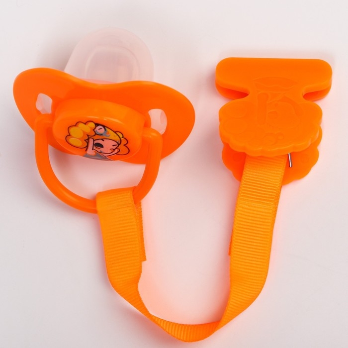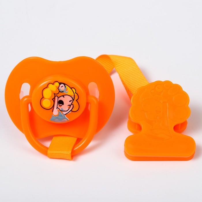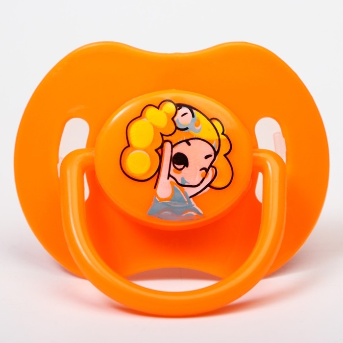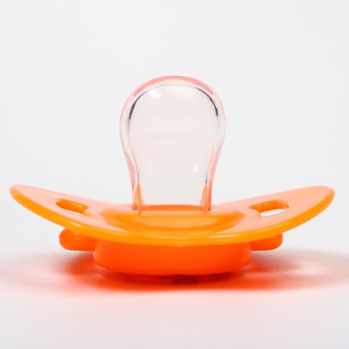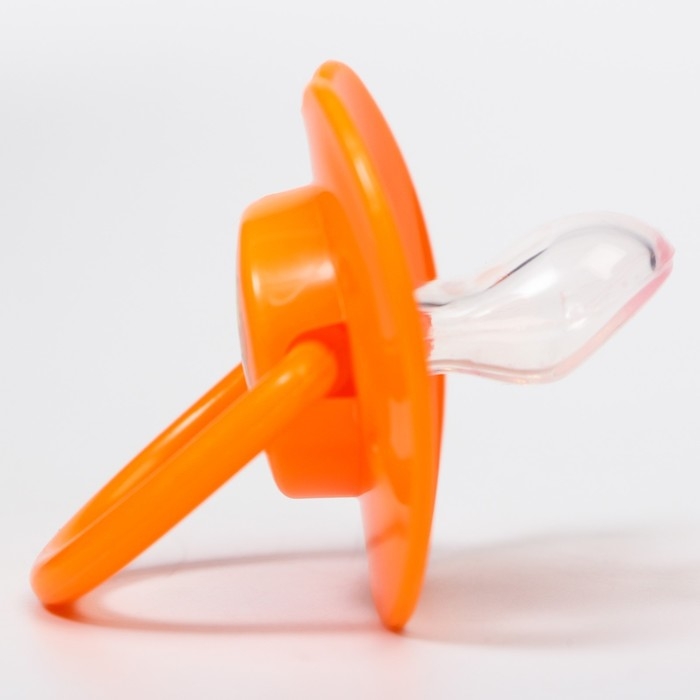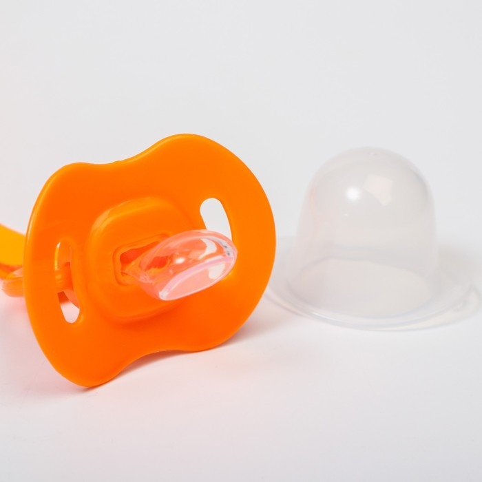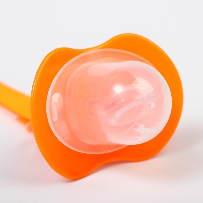 Соска - пустышка силиконовая ортодонтическая, от 0 мес., с держателем, цвет оранжевый