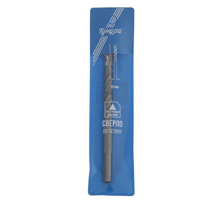 Сверло по бетону ТУНДРА, трехгранный хвостовик, 10 х 120 мм