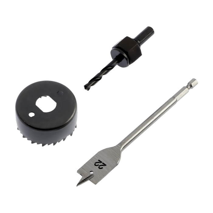 Набор для установки врезных замков ТУНДРА, сверло перовое 22 мм, пила кольцевая 54 мм