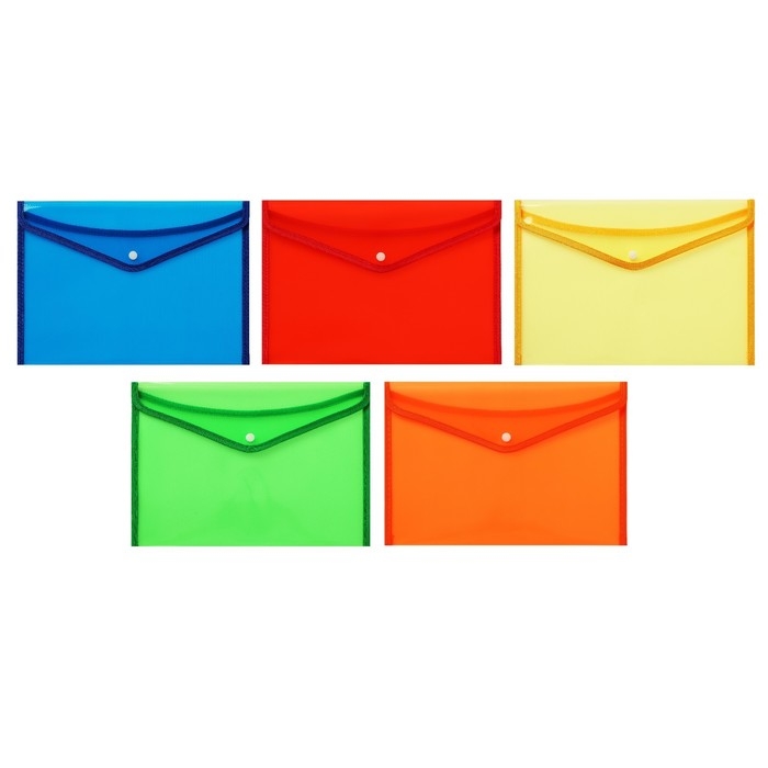 Папка конверт на кнопке А4, 180 мкм, Calligrata, полупрозрачная, с вертикальным расширением, микс