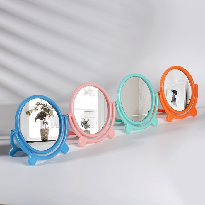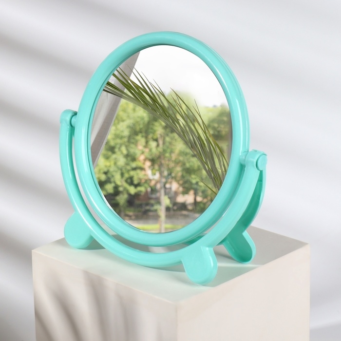 Зеркало на ножке «Овал», двустороннее, зеркальная поверхность 13,5 × 16,5 см, цвет МИКС