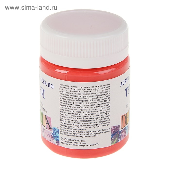 Краска по ткани, банка 50 мл, ЗХК Decola, Коралловая 4128355, (акриловая на водной основе)