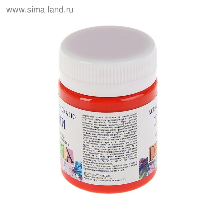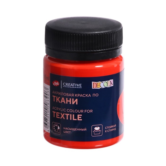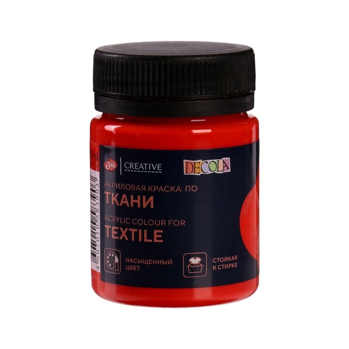 Краска по ткани, банка 50 мл, ЗХК Decola, Красная 4128331, (акриловая на водной основе)
