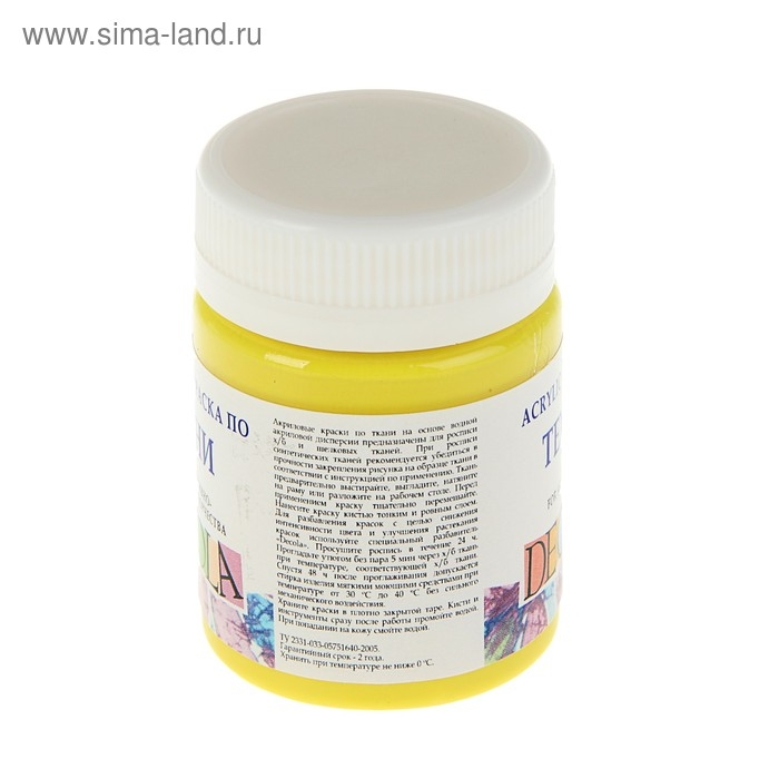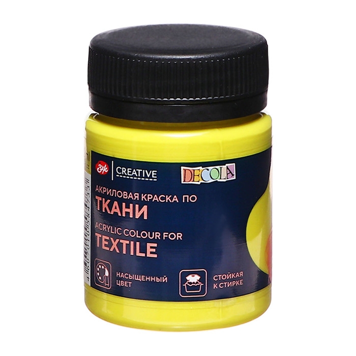 Краска по ткани, банка 50 мл, ЗХК Decola, Лимонная 4128214, (акриловая на водной основе)