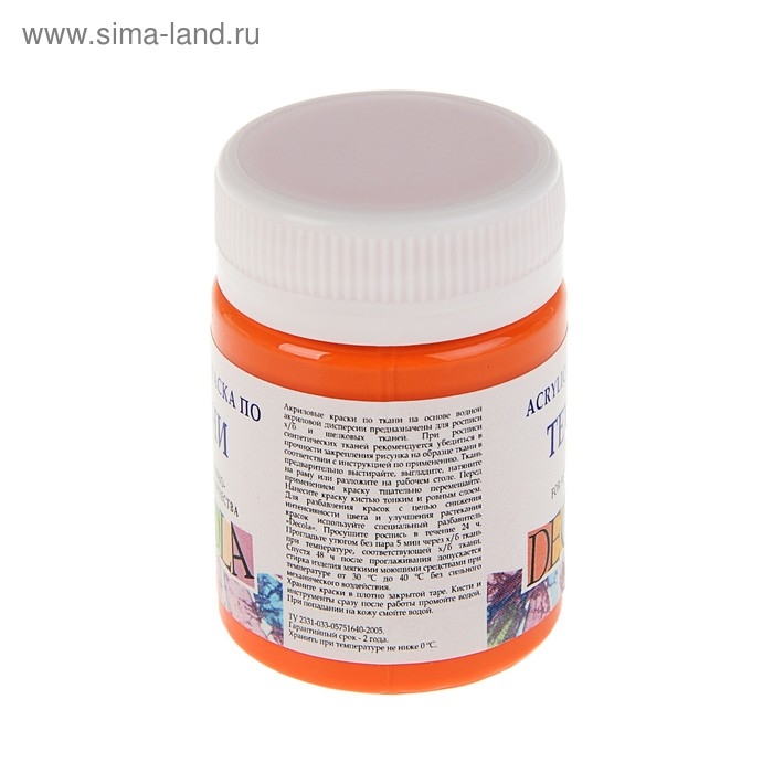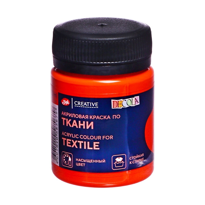 Краска по ткани, банка 50 мл, ЗХК Decola, Оранжевая 4128315, (акриловая на водной основе)