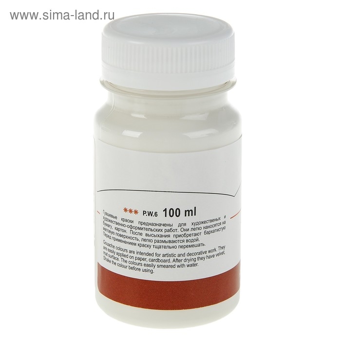 Гуашь художественная в банке 100 мл, ЗХК "Сонет", белила титановые (3620101)