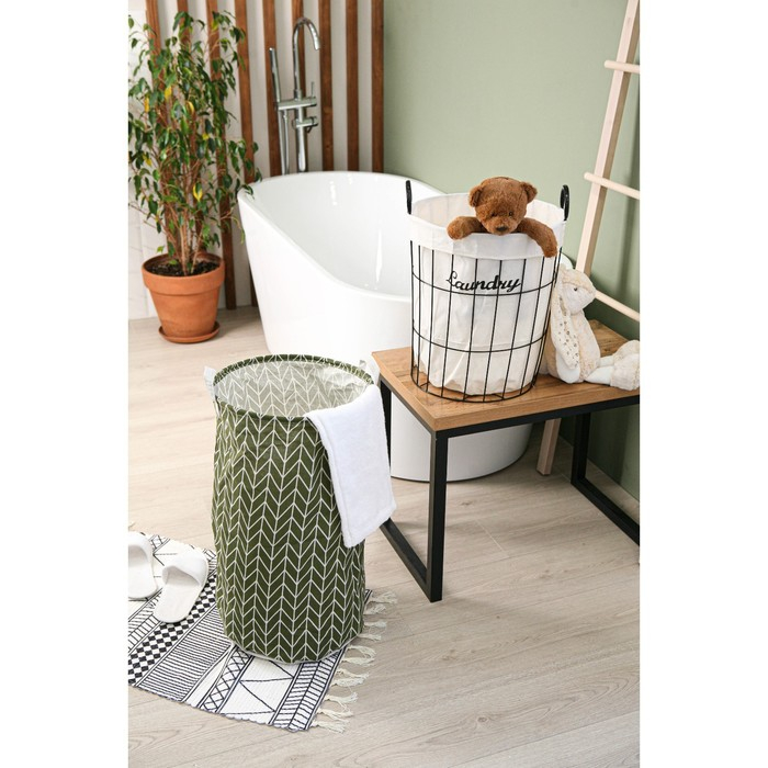 Корзина для белья Доляна «Зигзаг», 35×35×60 см, цвет зелёный
