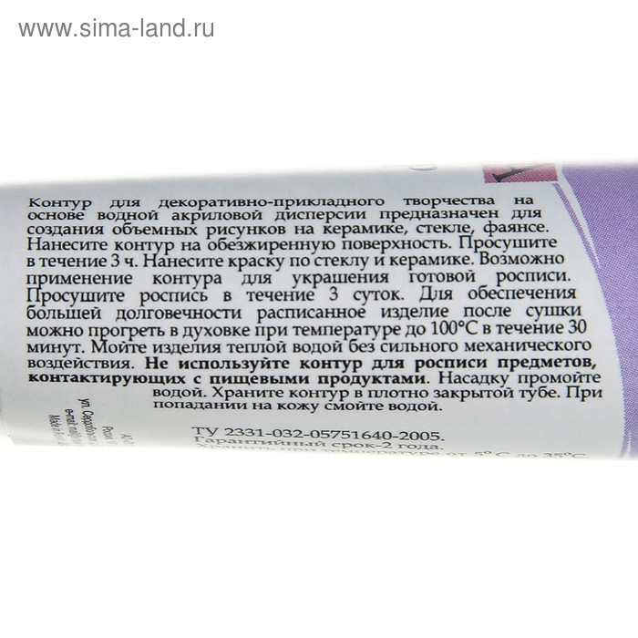 Используется для создания объемных рисунков на различных поверхностях: керамике, стекле, фаянсе. Отлично подходят для декорирования стеклянных и керамических поверхностей красками, имитируя витражи.