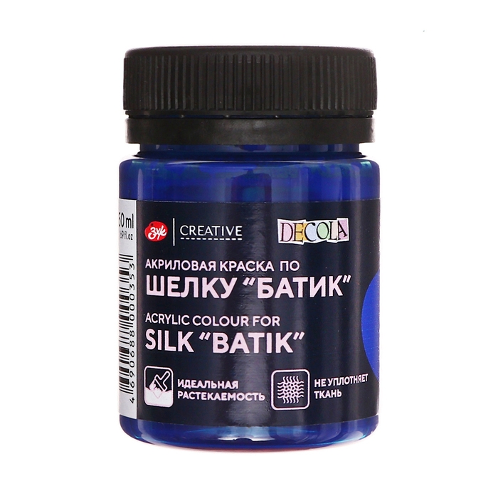 Краска по шелку "Батик", банка 50 мл, ЗХК Decola, Синяя темная 4428517 (акриловая на водной основе)