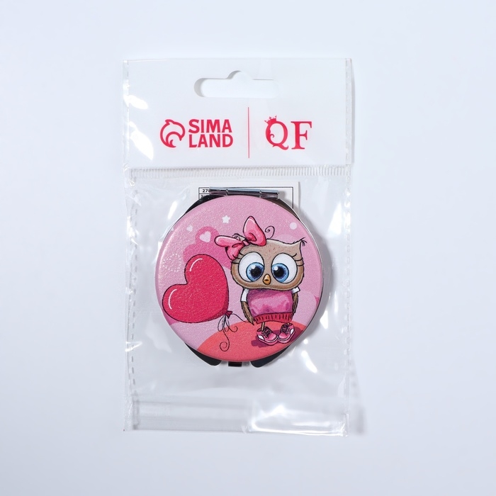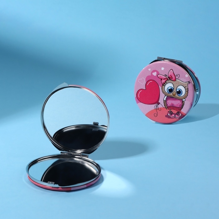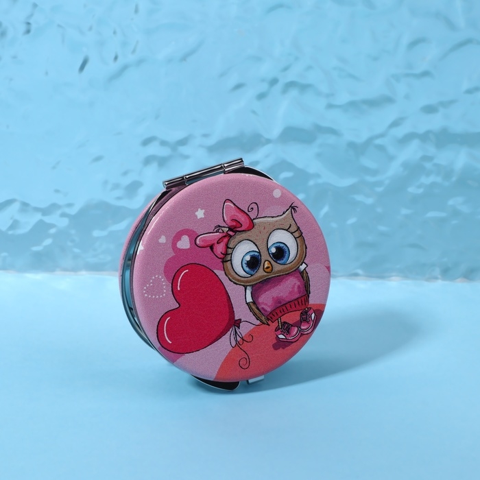 Зеркало складное «Совята», d = 6 см, искусственная кожа, цвет розовый