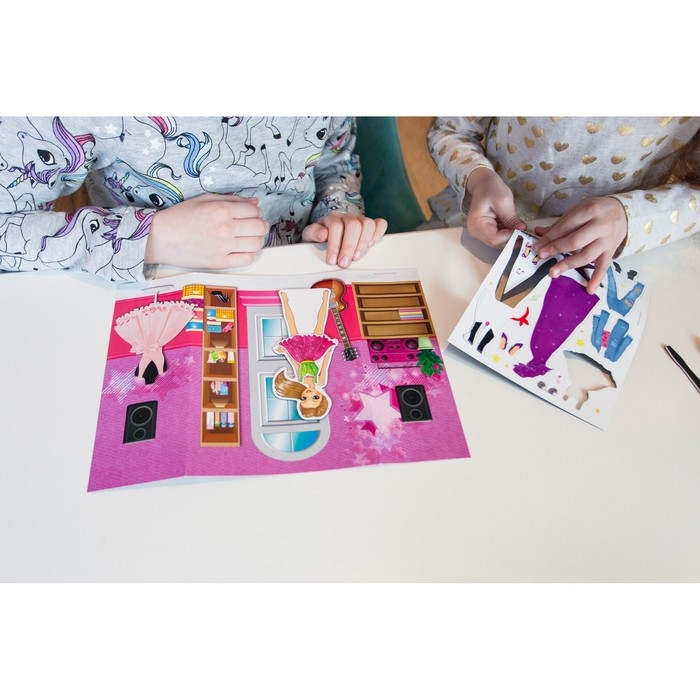 - Выберите подходящий наряд и аксессуары, а затем приложите их к кукле. Одежда приклеится к ней благодаря магнитной ленте.