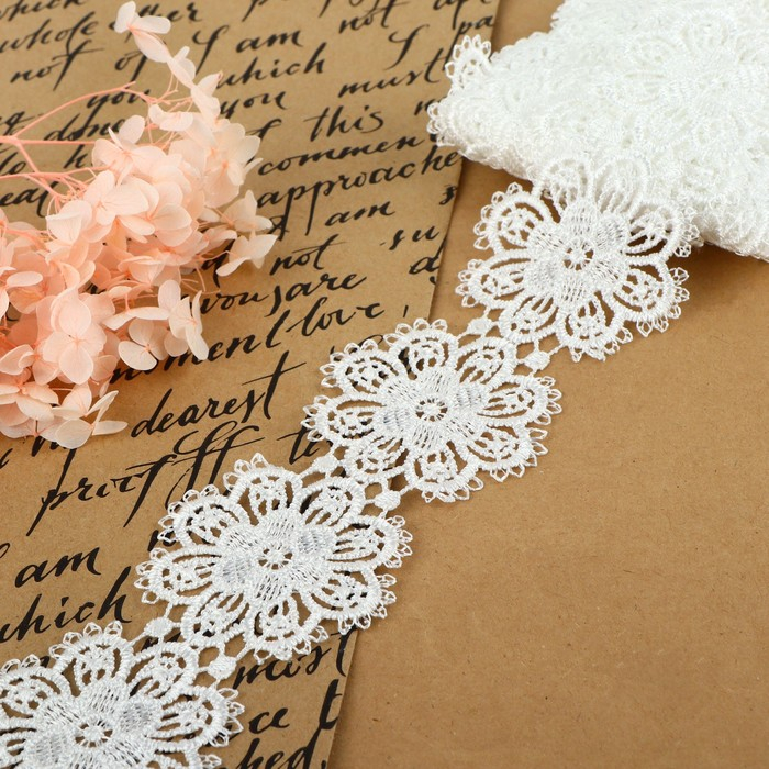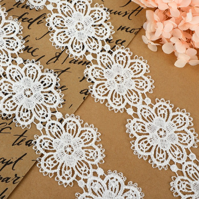 Кружево гипюровое, 55 мм × 9 ± 0,5 м, цвет белый