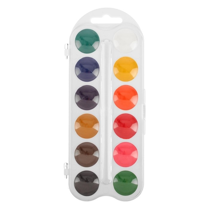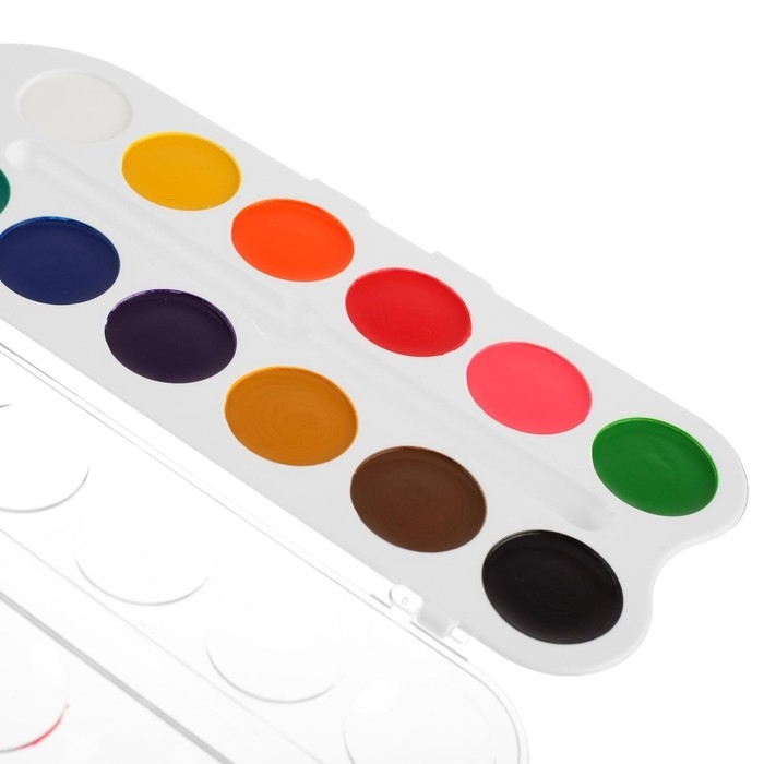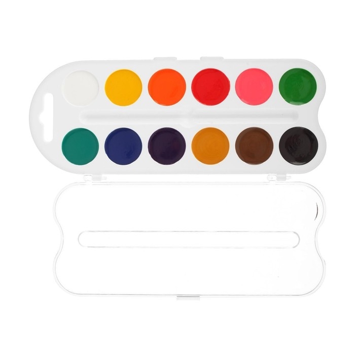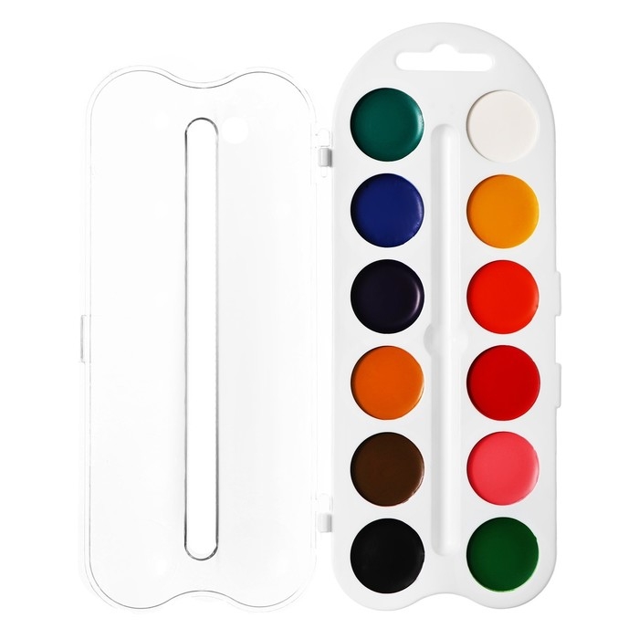 Акварель медовая ЗХК "Цветик", 12 цветов, в пластиковой коробке, без кисти