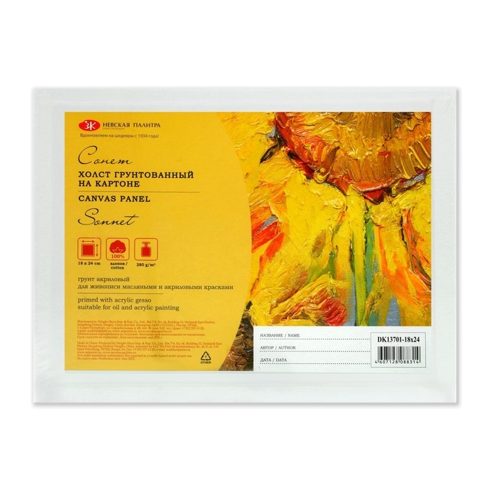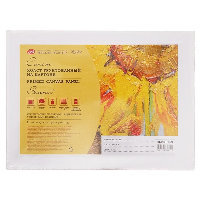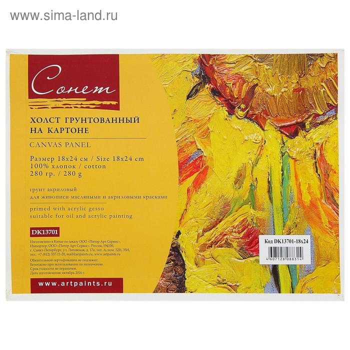 Холст на картоне 18 х 24 см, хлопок 100%, 3.0 мм, акриловый грунт, мелкозернистый, ЗХК "Сонет"