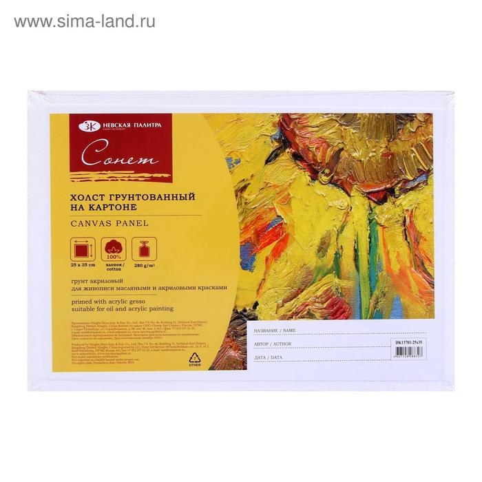 Холст на картоне 25 х 35 см, хлопок 100%, толщина 3 мм, акриловый грунт, мелкозернистый, ЗХК "Сонет", DK13701-25x35