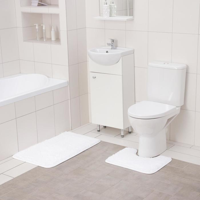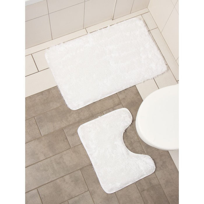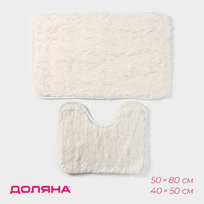 Коврики для ванной и туалета Доляна «Пушистик», 2 шт: 40×50 см, 50×80 см, цвет белый
