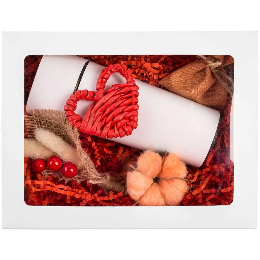 Коробка с окном InSight, белая с красным наполнением