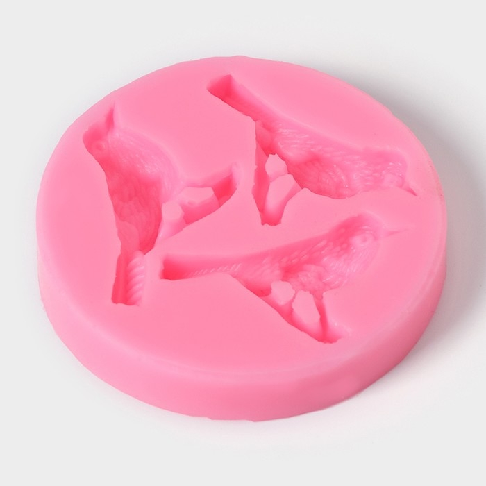 Молд Доляна «Три птицы», силикон, 6,5×1,1 см, цвет розовый