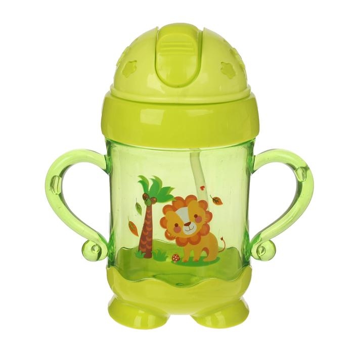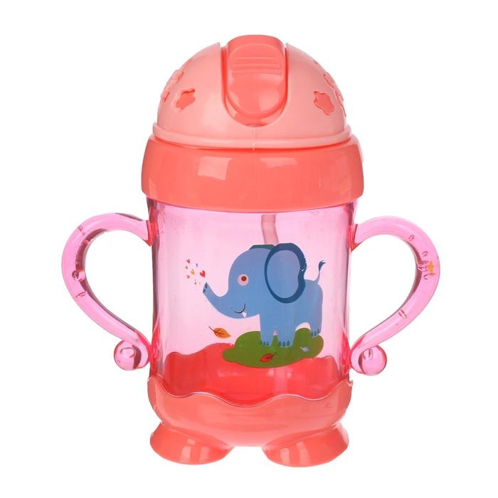 Поильник детский с силиконовой трубочкой, 220 мл., с ручками, цвет МИКС