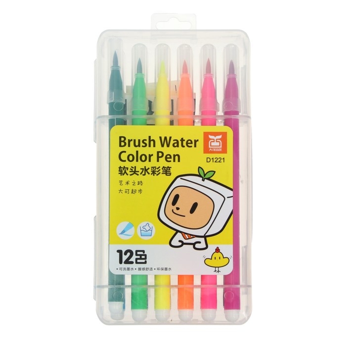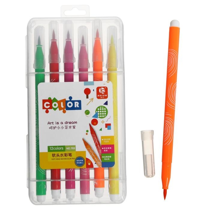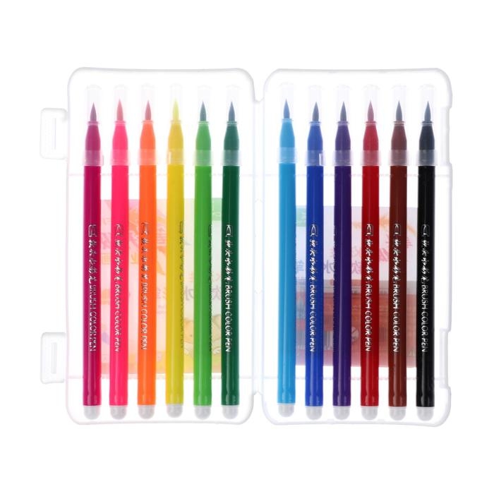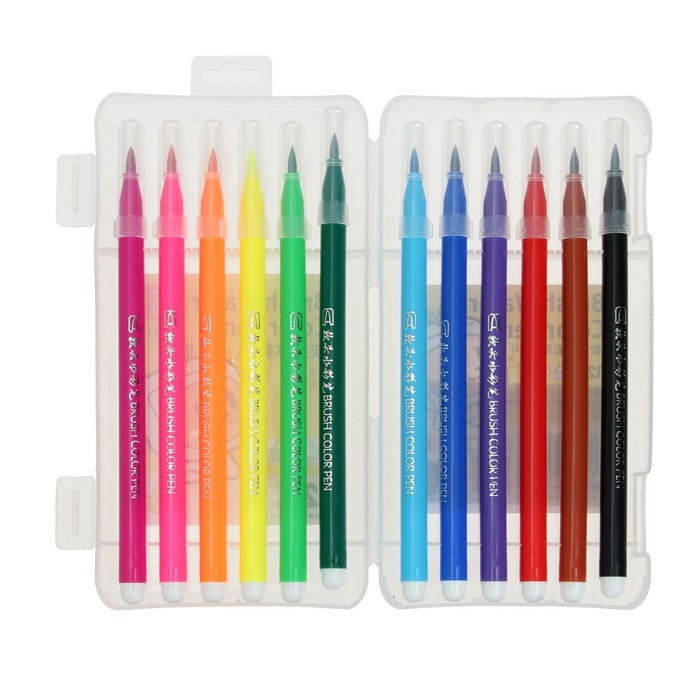 Фломастеры 12 цветов Кисти в блистере кистеобразный наконечник